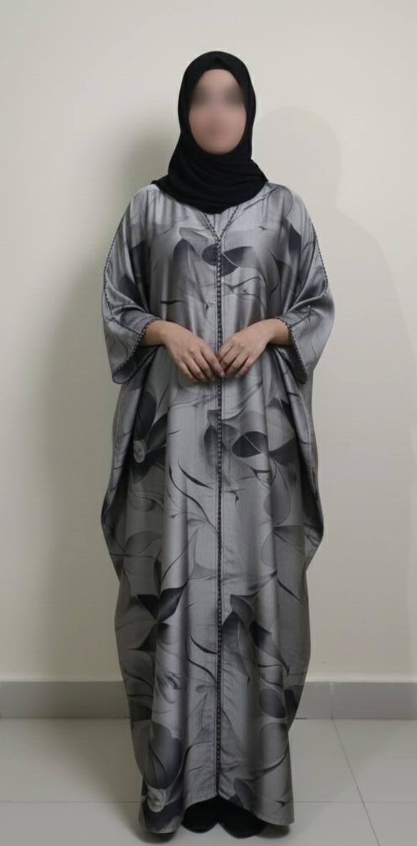 This abaya features a **front open design with buttons**, making it stylish as well as comfortable to wear.